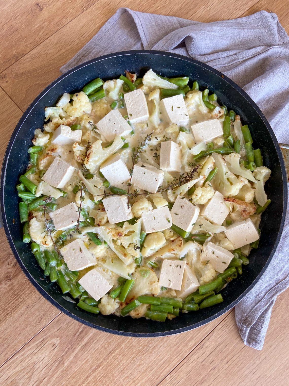 כרובית, שעועית וטופו בקרם קוקוס
