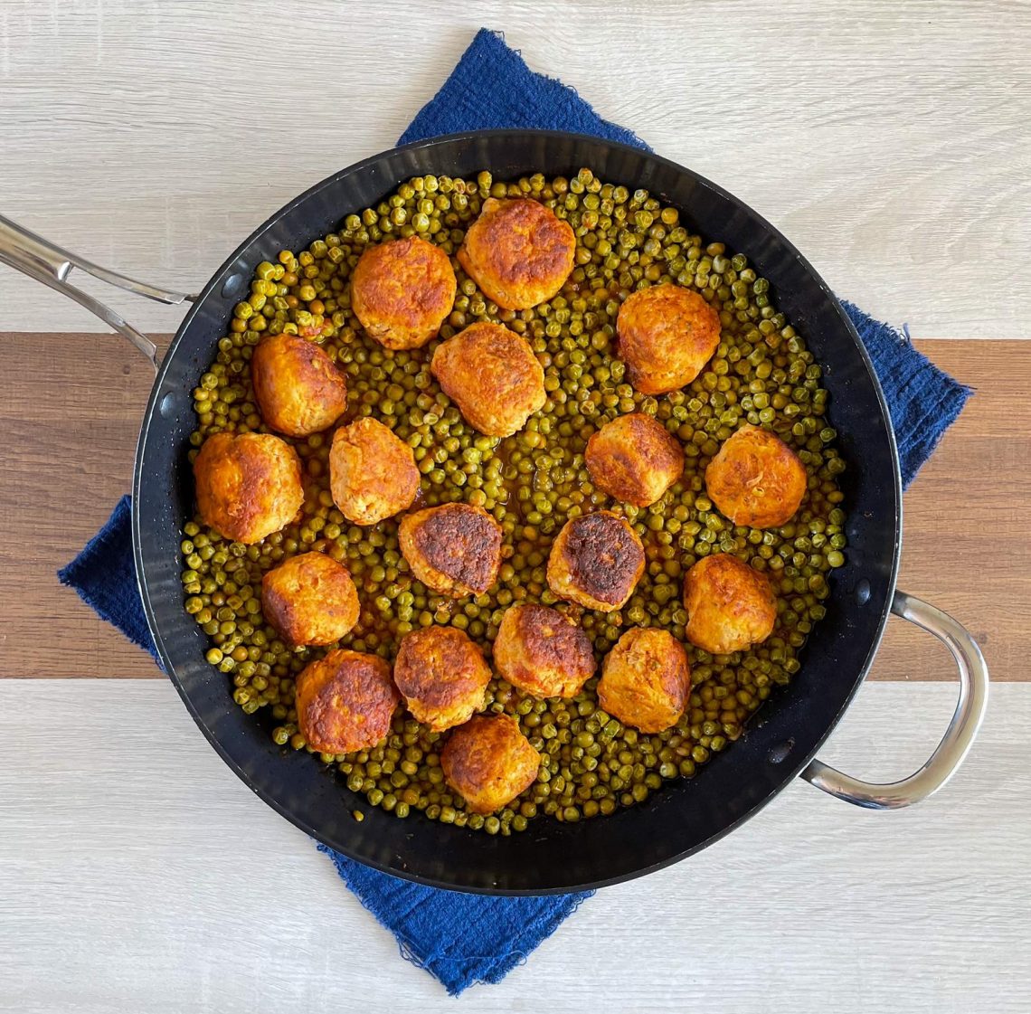- נעביר את הרוטב לסיר ונוסיף את האפונה, נסדר את הקציצות ונביא את הסיר לרתיחה.
