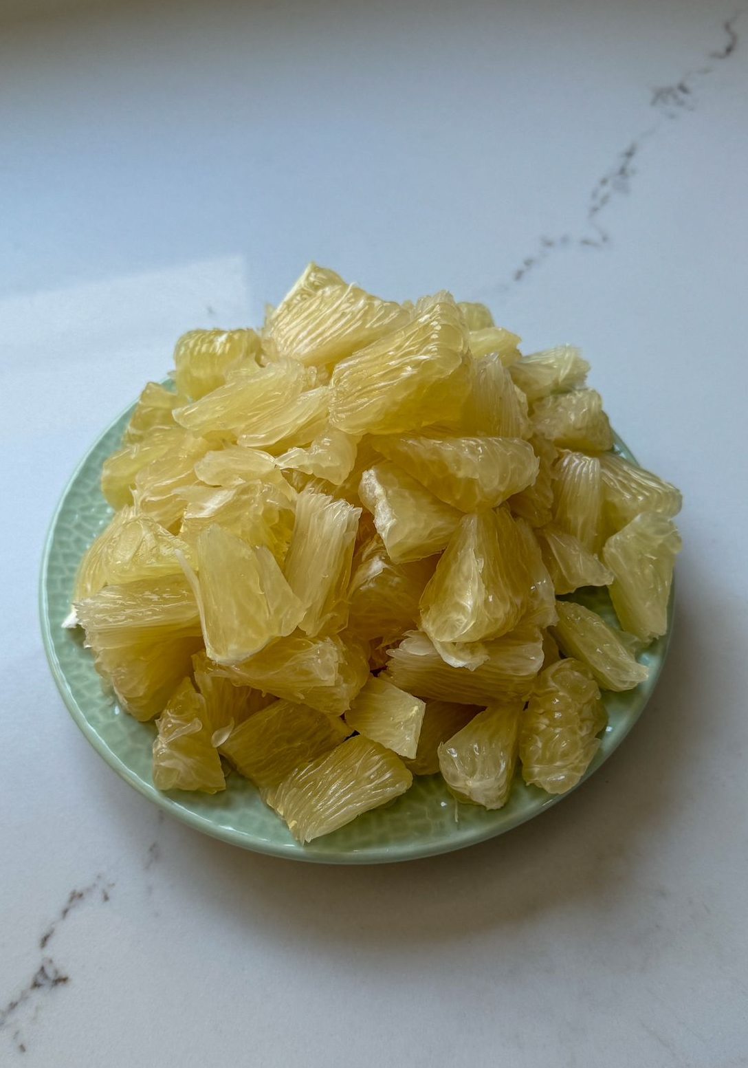 קחו פומלה עסיסית, סכין ובואו נכין ביסוני פומלה כיפים במינימום עבודה.