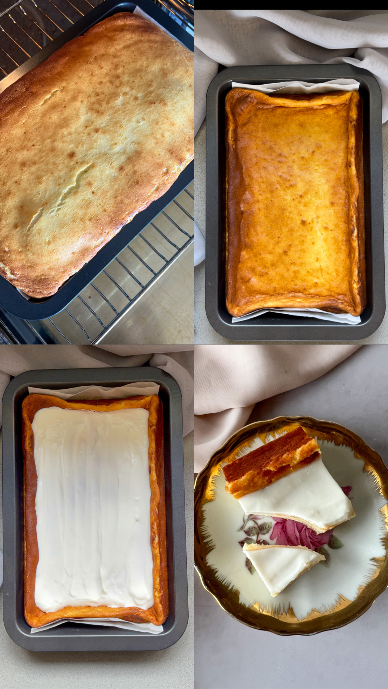 נעביר את הבלילה לתבנית האפייה ונכניס לתנור לאפייה של 40-35 דקות. שימו לב – העוגה תופחת מאוד ואז צונחת, זה מושלם! זה מה שיוצר את המרקם החלומי שלה.