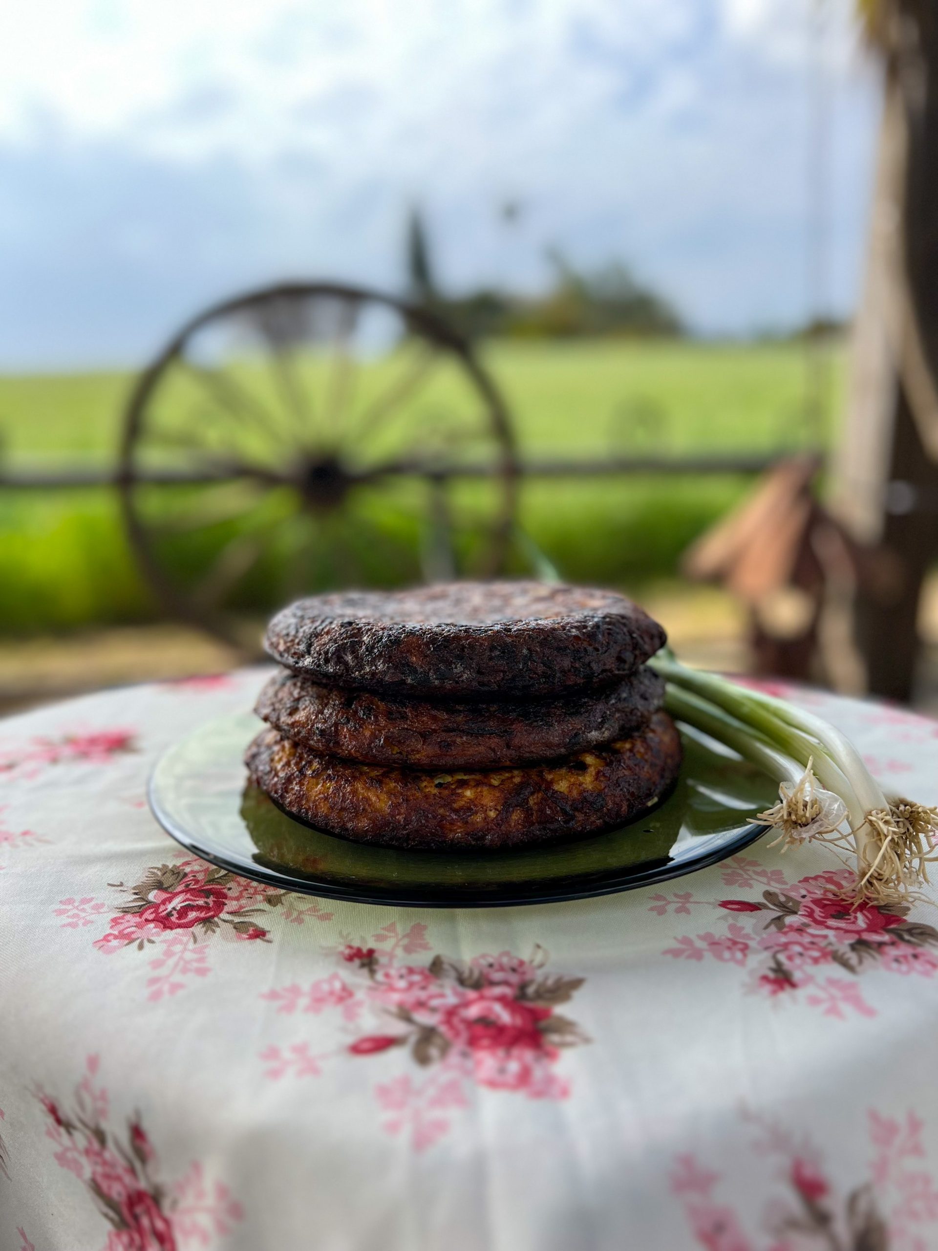 הבצל המקורמל, העוף המבושל והביצים.