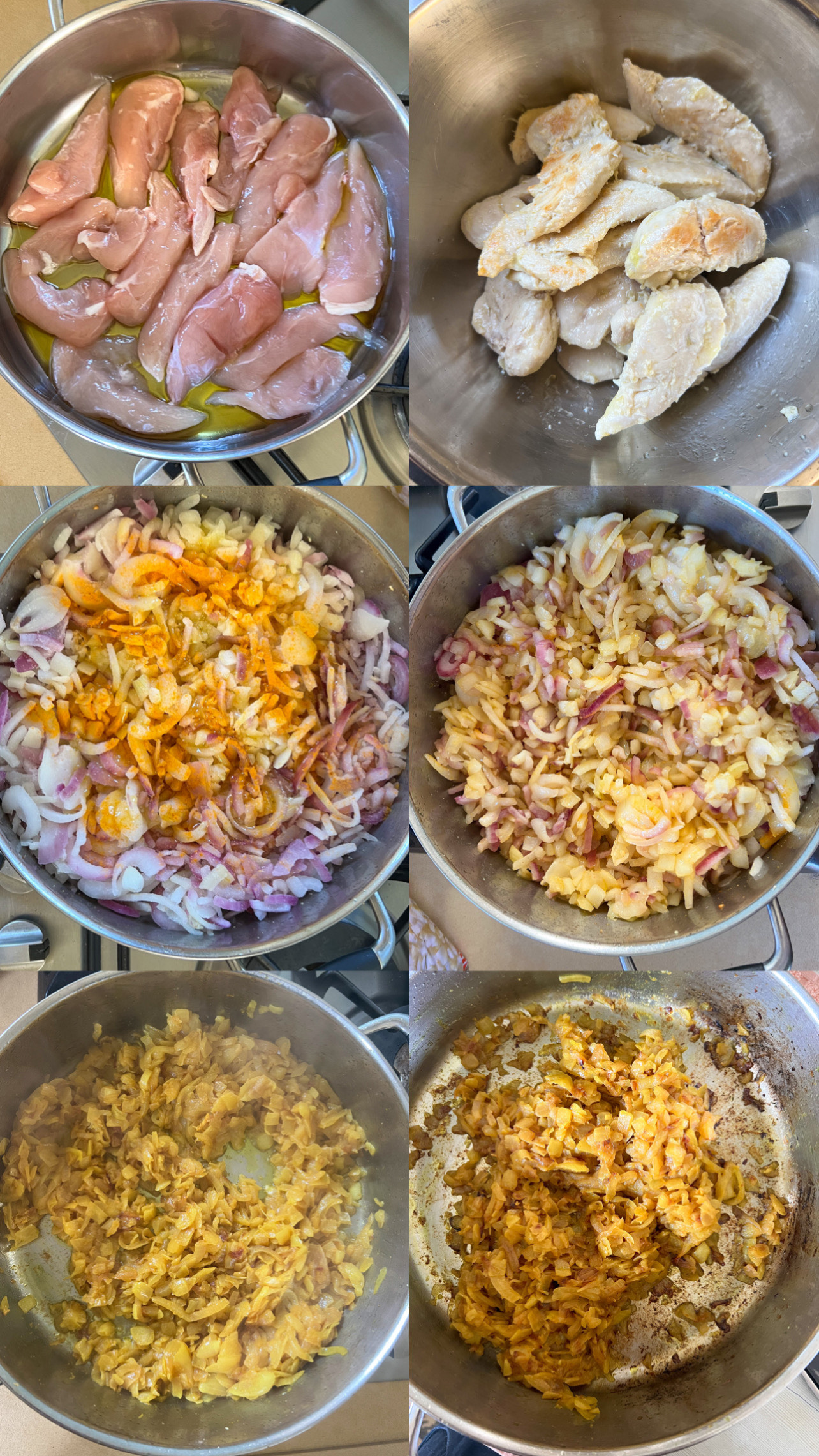 העוף מוכן מאוד מהר, הבצל מתקרמל ומתבשל לאט לאט.