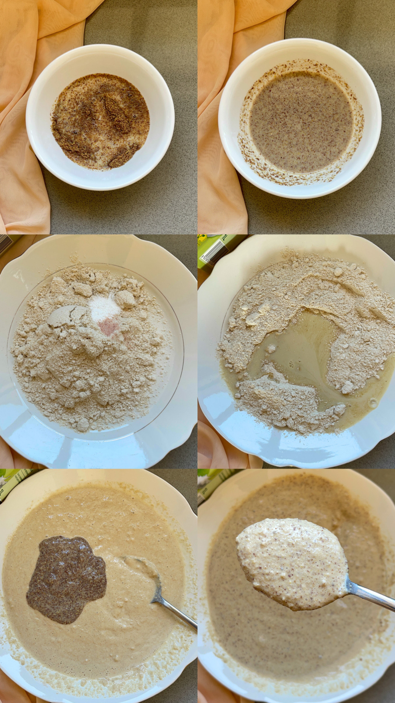 נשים בקערית את הפשתן הטחון ורבע כוס חלב צמחי, נערבב ונניח בצד.